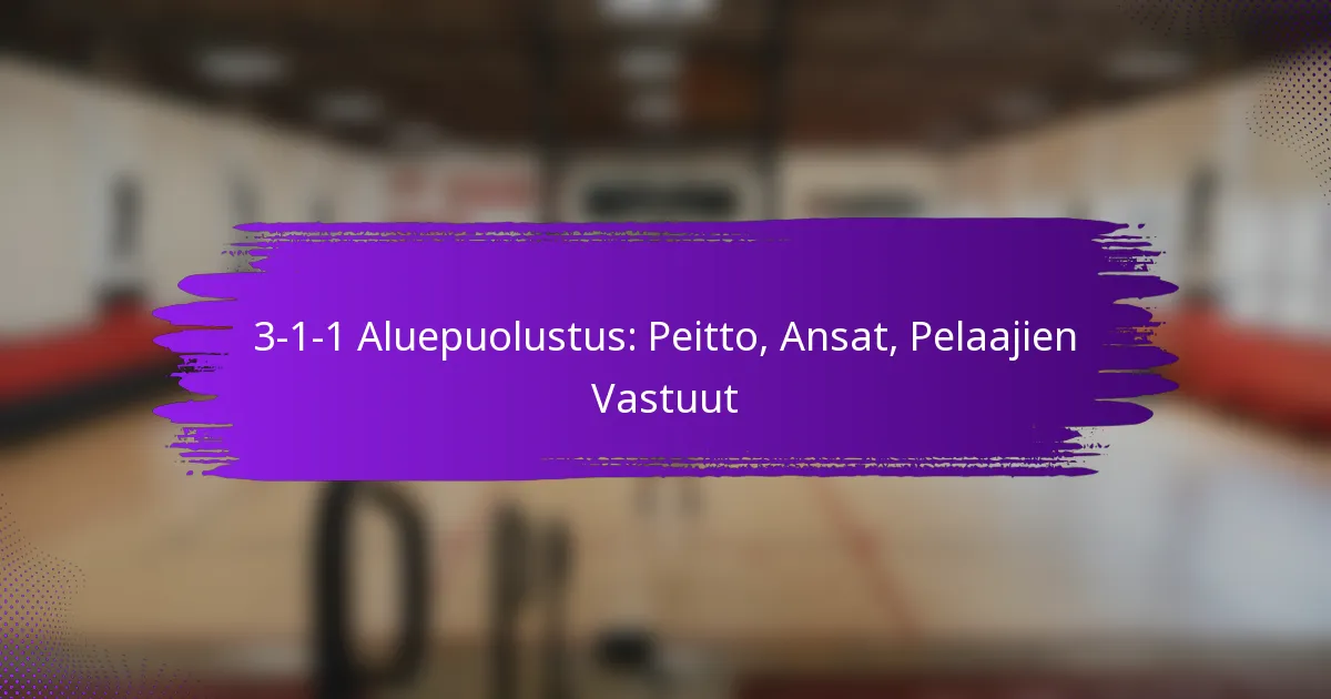3-1-1-aluepuolustus on strateginen koripallomuoto, joka sijoittaa kolme pelaajaa lähelle kentän pohjaa, yhden vapaaheittoviivalle ja yhden avainalueen yläosaan, suojaten tehokkaasti sekä sisäisiä että ulkoisia pisteytysmahdollisuuksia vastaan. Tämä puolustus korostaa aluevastuuta, mikä mahdollistaa paremman viestinnän ja sopeutumisen hyökkäysliikkeisiin. Tämän asetelman sisällä käytettävät ansaintatekniikat sisältävät pallonkäsittelijän tuplaamisen paineen luomiseksi ja pallonmenetysten pakottamiseksi, mikä vaatii tarkkaa koordinointia pelaajien kesken.