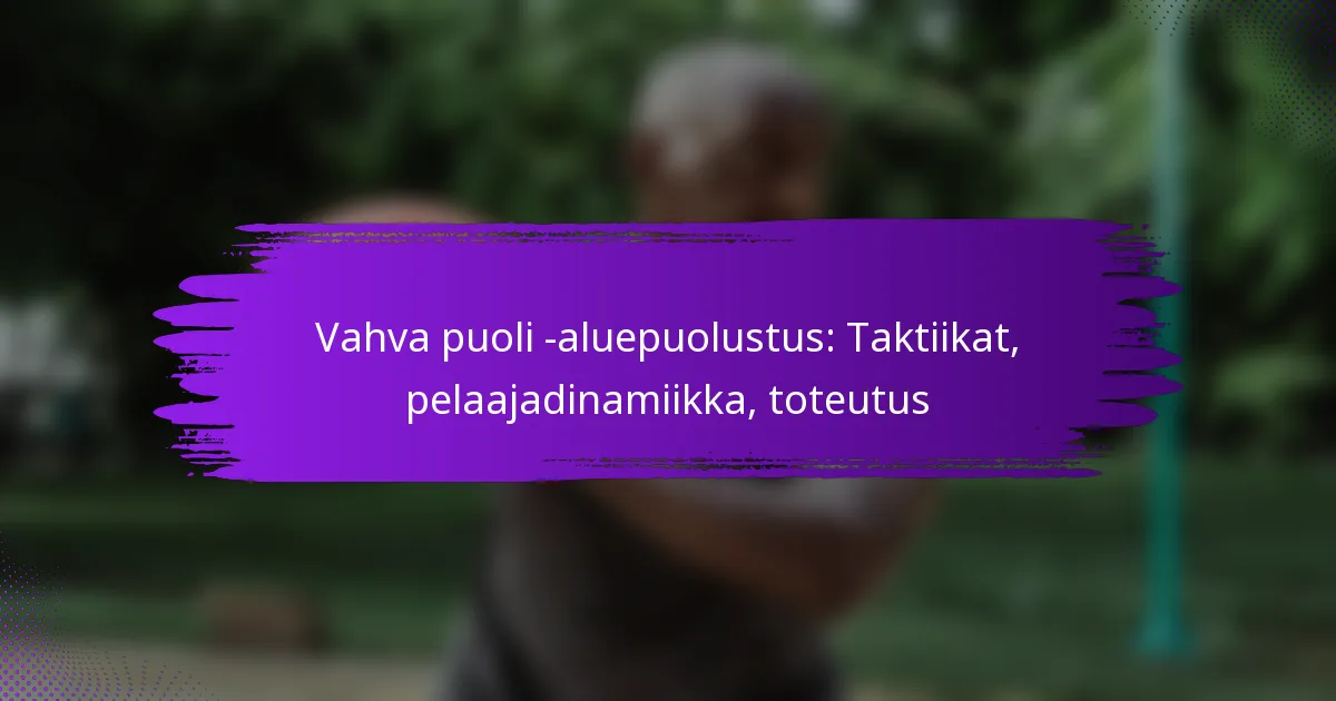 Vahvan puolen aluepuolustus on taktinen strategia, jota käytetään joukkueurheilussa, ja se keskittyy kentän tai pelialueen puoleen, jossa on eniten hyökkääviä pelaajia. Määrittämällä pelaajille tietyt alueet, tämä lähestymistapa pyrkii rajoittamaan maalintekopaikkoja ja luomaan vahvan esteen hyökkäyksille. Tehokas toteutus perustuu tiimityöhön, viestintään ja ennakoimiseen, mikä mahdollistaa pelaajien dynaamisen sopeutumisen hyökkäykseen ja uhkien tehokkaan neutraloimisen.