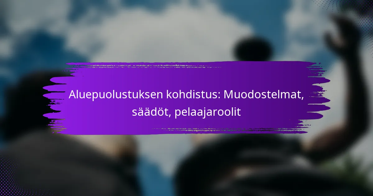 Aluepuolustuksen järjestäminen on taktinen strategia joukkueurheilussa, jossa pelaajat keskittyvät tiettyjen alueiden puolustamiseen sen sijaan, että he seuraisivat yksittäisiä vastustajia. Tämä lähestymistapa edistää tiimityötä ja parantaa puolustuksen tehokkuutta ennakoimalla hyökkäysliikkeitä. Erilaiset alueformaatio, kuten 2-3 ja 3-2 alueet, tarjoavat erottuvia rakenteita, jotka on räätälöity erilaisiin pelitilanteisiin, kun taas reaaliaikaiset säädöt mahdollistavat joukkueiden tehokkaan reagoinnin vastustajien strategioihin.